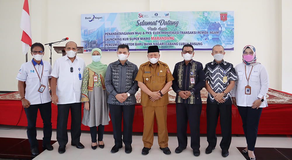 AGAM, METRO–Bank Nagari melakukan penandatanganan perjanjian kerjasama atau MoU dengan Pemerintah Kabupaten Agam tentang pengembangan digitalisasi ekonomi daerah sekaligus meresmikan kantor Bank Nagari cabang Lubuk Basung, kemarin (21/9).