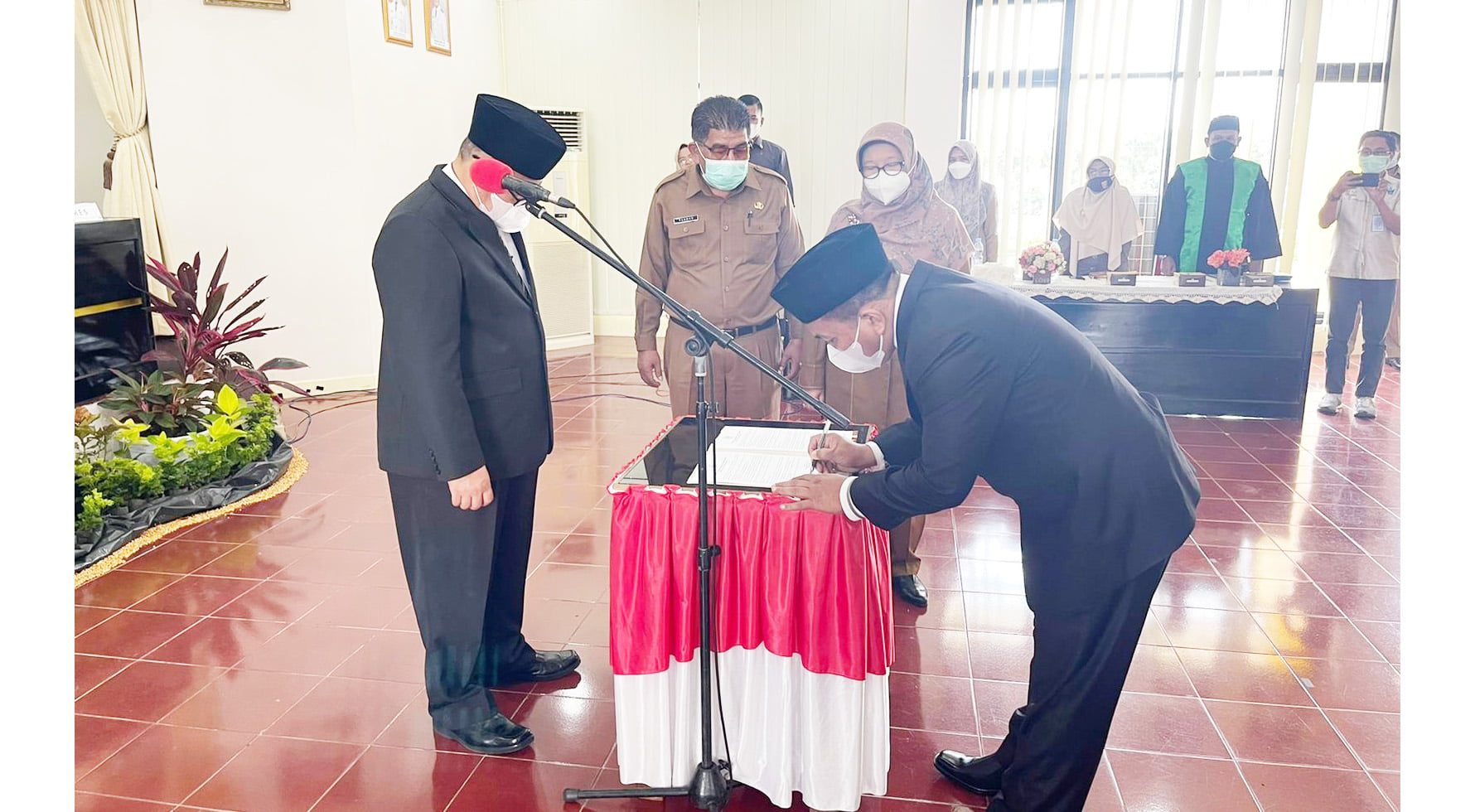 Hendri Chaidir dilantik oleh Bupati Agam di Auala Kantor Bupati Agam, Selasa siang.