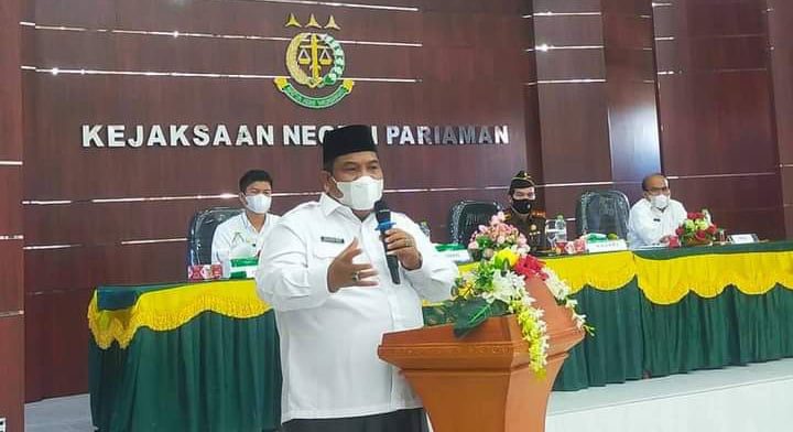 PDG. PARIAMAN, METRO–Bupati Padang Pariaman Suhatri Bur membuka sekaligus keynote speaker acara pelayanan hukum terhadap Walinagari Se- Kabupaten Padang Pariaman terkait penggunaan dana desa, di Kejaksaan Negeri Pariaman, Rabu (22/9).
