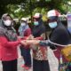 Personil Satgas TMMD 112 Kodim Solok melakukan pekerjaan melangsir batu secara manual. Melangsir batu dilakukan bersama warga yang ikut membantu kerja bakti.