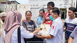 BANTU KORBAN KEBAKARAN— Pengurus DPD Gerindra Sumbar menyerahkan bantuan dari Andre Rosiade untuk korban kebakaran di Lapai, Kecamatan Nanggalo.