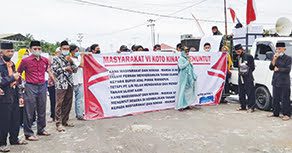 PASBAR,METRO–Puluhan masyarakat VI Koto Kinali, Kabupaten Pasaman Barat (Pasbar), melakukan aksi unjuk rasa ke perusahaan PT Lintas Inter Nusa (LIN) Kinali, Selasa (28/9). Mereka menuntut agar tanah ulayat seluas 13.500 hektare yang saat ini digarap oleh pihak perusahaan agar dikembalikan lagi kepada masyarakat.