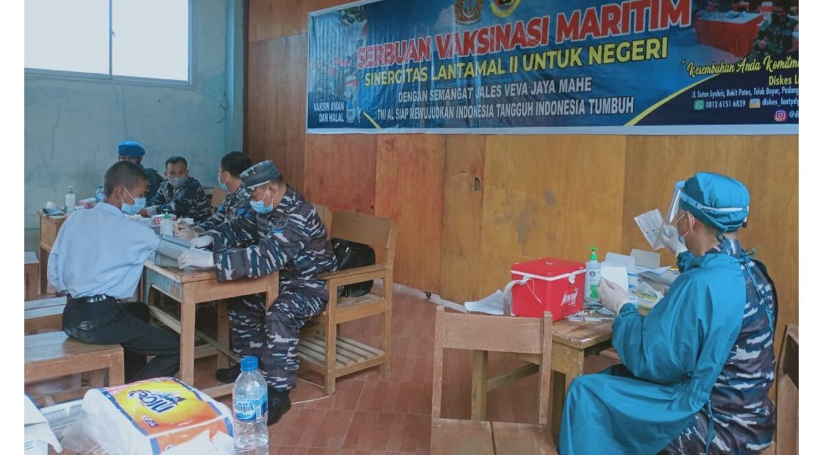 Kadiskes Lantamal II Letkol Laut (K) Zulfitri, didampingi Kadispen Lantamal II Mayor Laut (T) Syahrul mengatakan, kegiatan ini tetap mengedepankan pelayanan yang optimal dan humanis, Nakes dari Diskes Lantamal II ini sudah memberikan pelayanan vaksinasi ke beberapa titik pelayanan terhadap masyarakat. “Vaksinasi ini terus dikebut agar terbentuk Herd Immunity di tengah masyarakat, terutama di kalangan para siswa. Target dunia pendidikan agar proses belajar mengajar akan dilaksanakan secara tatap muka,” ujar Zulfitri.