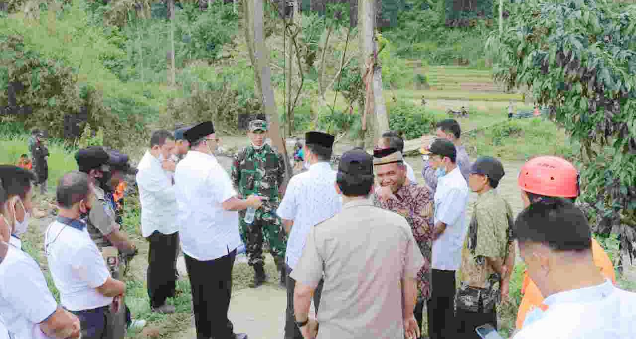 Menerima laporan dari warga tentang adanya Jembatan yang putus Bupati Pasaman Benny Utama langsung bergerak cepat meninjau lokasi bencana. Rabu (29/9) sore kemarin.