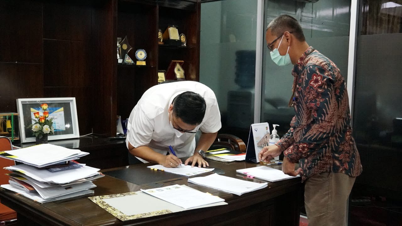 TANAHDATAR, METRO–Wakil Bupati Tanah Datar Richi Aprian, SH tandatangani berita acara kesepakatan batas daerah antara Kabupaten Tanah Datar dengan Kabupaten Sijunjung, serta batas daerah Kabupaten Tanah Datar dengan Kabupaten Solok, diruang kerja Kepala Bagian Pemerintahan OTDA Provinsi Sumatera Barat, Jumat (1/10).