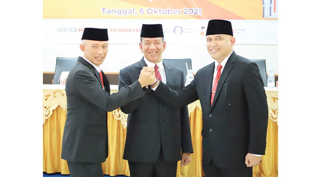 BUPATI Pesisir Selatan (Pessel) Rusma Yul Anwar melantik Mawardi Roska sebagai Sekretaris Daerah (Sekda) Pesisir Selatan di aula Kantor Bappedalitbang, Rabu (6/10). Pelantikan diawali dengan pengucapan sumpah jabatan, penandatanganan fakta integritas. Hadir dalam pelantikan tersebut anggota Forkopimda, kepala perangkat daerah dan undangan lainnya.