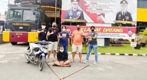 PADANG, METRO–Seorang pria asal Nganjuk, Provinsi Jawa Timur ditangkap Jajaran Opsnal dan Jatanras Satreskrim Polresta Padang gara-gara nekat membeli sepeda motor yang dicuri di sebuah kedai kawasan Los Baro Pasar Raya Padang, Kelurahan Kampung Jao, Kecamatan Padang Barat.
