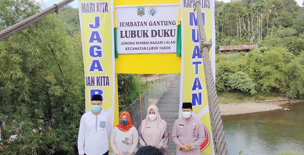 SIJUNJUNG, METRO–Harapan masyarakat untuk pembangunan jembatan gantung Lubuk Duku, Jorong Rumbai, Nagari Lalan, Kecamatan Lubuk Tarok, Kabupaten Sijunjung akhirnya terwujud. Jembatan sarana transpotasi penghubung itu menjadi akses utama bagi masyarakat untuk mengeluarkan hasil pertanian yang merupakan sektor utama perekonomian masyarakat setempat.