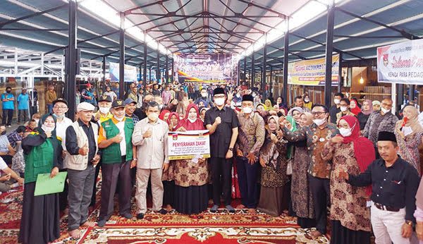 Wali Kota Bukittinggi Erman Safar didampingi Sekda Martias Wanto menyampaikan apresiasi kepada Baznas Bukittinggi atas bantuan yang diberikan kepada pedagang. Bantuan ini tentunya dapat dimanfaatkan untuk permodalan bagi para pedagang.