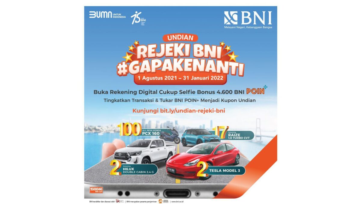 Pemimpin BNI Wilayah 02, Faizal Arief Setiawan ditemui menjelaskan, cukup dengan menukarkan BNI POIN+ menjadi kupon undian di BNI Mobile Banking saja. Nasabah bisa mengumpulkan poin secara otomatis dan mudah melalui pembukaan rekening, peningkatan saldo tabungan, transaksi kartu debit dan transaksi BNI Mobile Banking. Adapun program ini berlangsung mulai dari 1 Agustus 2021 s/d 31 Januari 2022.