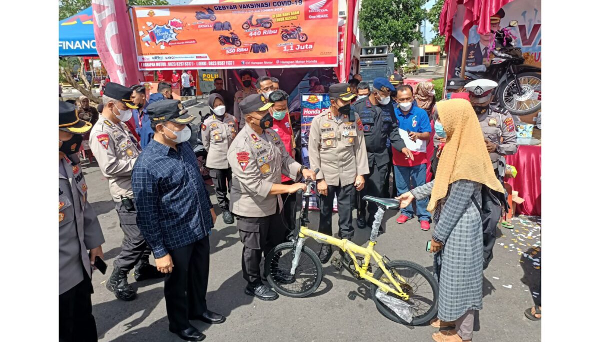 Dalam acara Gebyar Vaksin hari ini Kapolres Agam beserta panitia penyelenggara menyediakan doorprize untuk masyarakat yang telah di vaksin dengan hadiah berupa 2 unit Sepeda Motor, 10 unit sepeda, TV, Kulkas, kompor gas, dan banyak hadiah lainya.