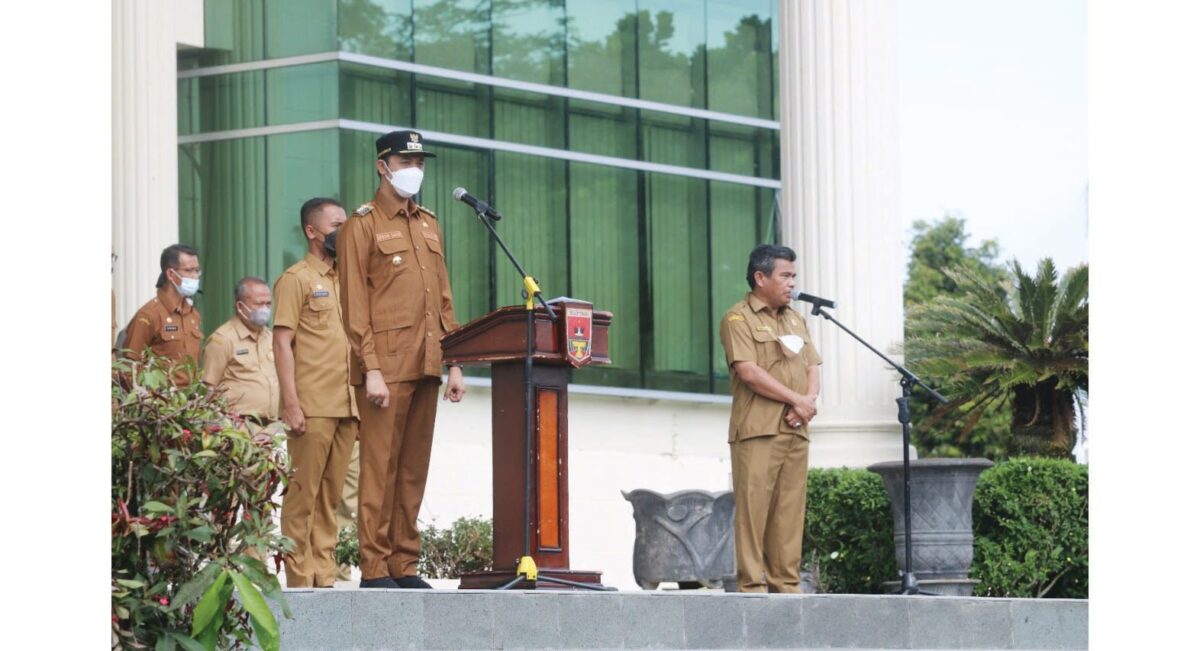 BUKITTINGGI, METRO–Wali Kota Bukittinggi, Erman Safar pimpin apel gabungan di lingkungan Pemko Bukittinggi, di lapangan Balai Kota Gulai Bancah, Senin (25/10). Apel gabungan dihadiri Ketua DPRD Beny Yusrial, Sekdako Martias Wanto, Kepala SKPD, Camat, Lurah dan seluruh ASN di lingkungan Pemko Bukittinggi.