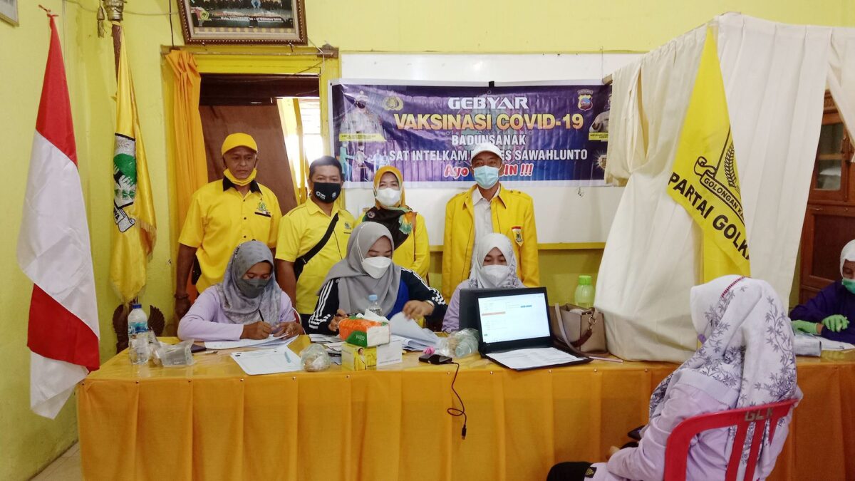 SAWAHLUNTO, METRO–Partai Golongan Karya (Golkar) Sawahlunto meriahkan HUT Golkar yang ke 57 dengan menggelar acara vaksinasi covid 19 gratis untuk kadernya dan masyarakat Sawahlunto yang belum divaksin dosis 1 (D 1) atau yang akan vaksin dosis 2 (D 2), Rabu (27/10) di kantor Golkar Sawahlunto Kelurahan Pasar Kecamatan Lembah Segar Kota Sawahlunto.