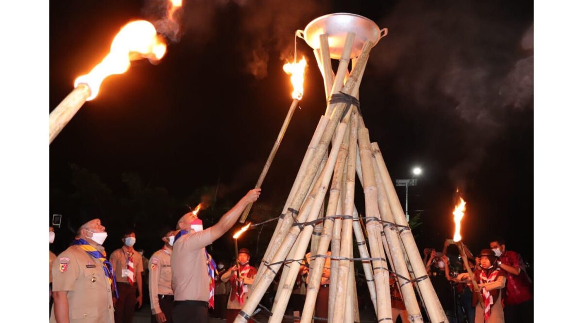 Selanjutnya Wagub Sumbar, Audy Joinaldy bersama Bupati Agam Andri Warman menghidupkan api obor yang dimaknai sebagai momen persatuan serta penjiwaan Dasa Darma Pramuka.