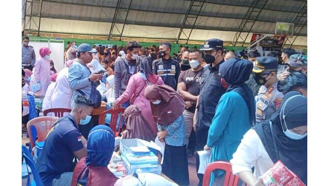 BUKITTINGGI,METRO–Polres Bukittinggi Agam, bersama Pemko Bukittinggi dan Pemkab Agam didukung Kodim 0304 Agam sukses gelas Sumbar Sadar Vaksin (Sumdarsin). Kegiatan vaksinasi massal bertabur hadiah ini diselenggarakan di tiga titik di Bukittinggi dan Agam Timur, Sabtu (30/10).