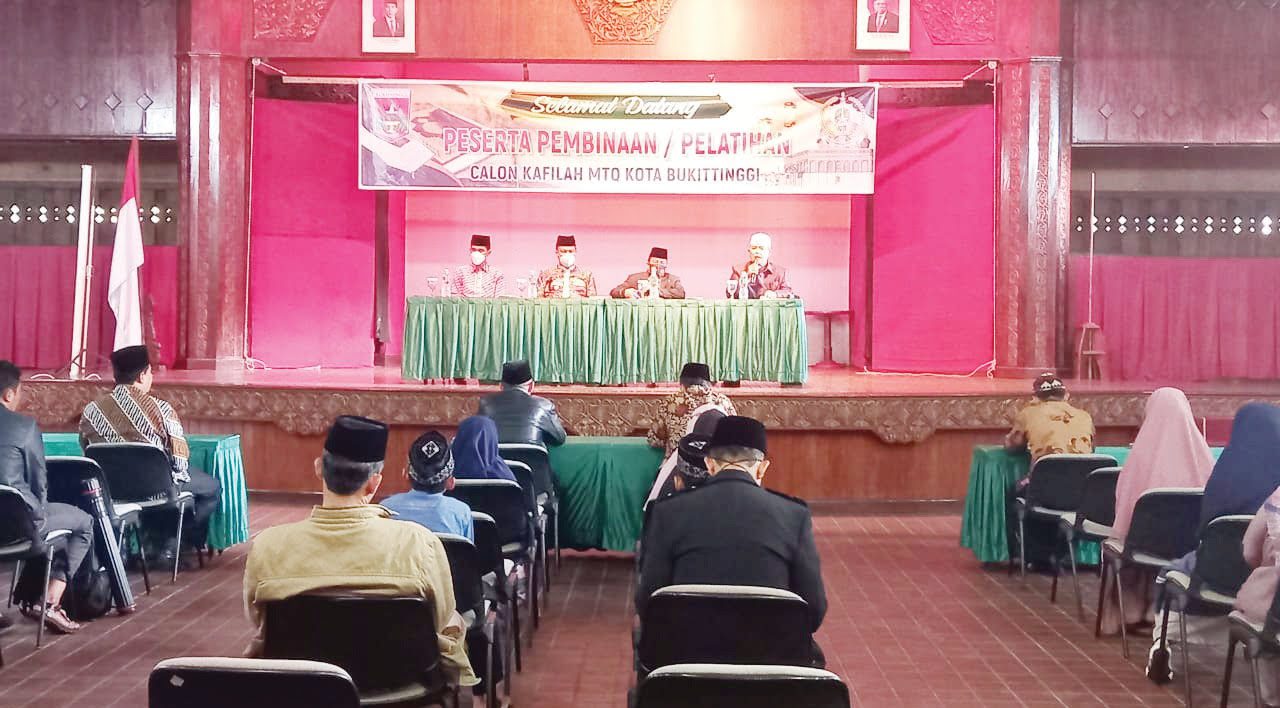 BUKITTINGGI, METRO–Wakil Wali Kota Bukittinggi Marfendi didampi­ngi Kakan Kemenag Kota Bukittinggi, Kasmir membuka Training Center ketiga Kafilah Kota Bukittinggi sebelum tampil di MTQ tingkat Provinsi Sumbar di Kota Padangpanjang, 12-19 November nanti. Kegiatan itu, dilaksanakan di Hotel Pusako Bukittinggi, Kamis (28/10).