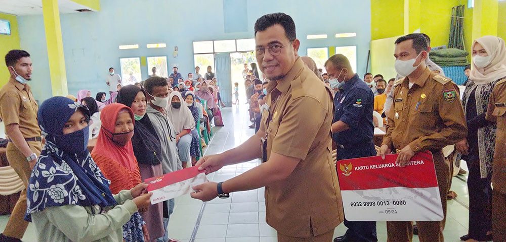 SIJUNJUNG, METRO–Sekretaris Daerah Kabupaten (Sekda) Sijunjung, Zefnihan menyalurkan, Kartu Keluarga Sejahtera (KKS) kepada masyarakat di Kecamatan Tanjung Gadang di UDKP Kecamatan setempat, Selasa (2/11). Masyarakat di Kecamatan Tanjung Gadang penerima Kartu Keluarga Sejahtera (KKS) sebanyak 1.110 Kartu Keluarga (KK).