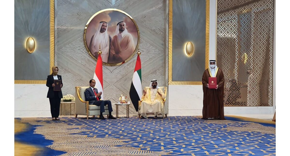 ABU DHABI, METRO–Direktur Utama Pertamina Nicke Widyawati dan CEO Masdar Mohamed Jameel Al Ramahi secara formal bertukar dokumen nota kesepahaman di istana kepresidenan Uni Emirat Arab di Abu Dhabi (4/11) yang disaksikan oleh putra mahkota Abu Dhabi Sheikh Mohamed bin Zayed Al Nahyan dan Presiden Republik Indonesia Joko Widodo.