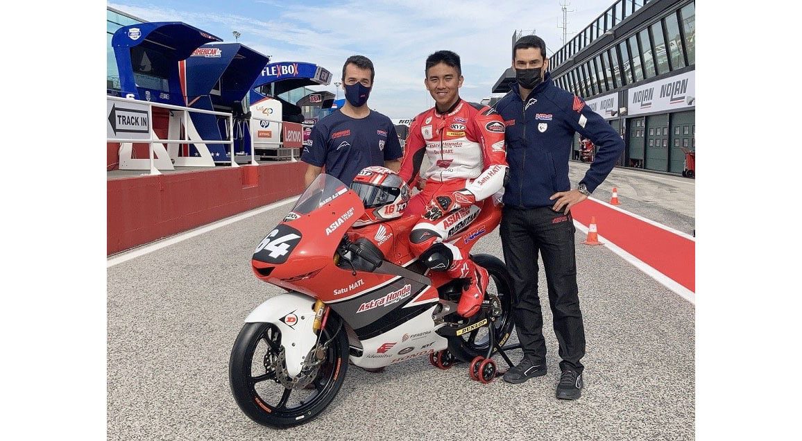 JAKARTA, METRO–Menjelang Grand Prix Moto3 di Misano World Circuit Marco Simoncelli, Italia, Astra Honda Racing Team (AHRT) mengajak masyarakat terus memperkuat dukungan pada Mario Suryo Aji yang akan balapan bersama Honda Team Asia. Mendapatkan kesempatan dua kali balap sebagai wildcard.