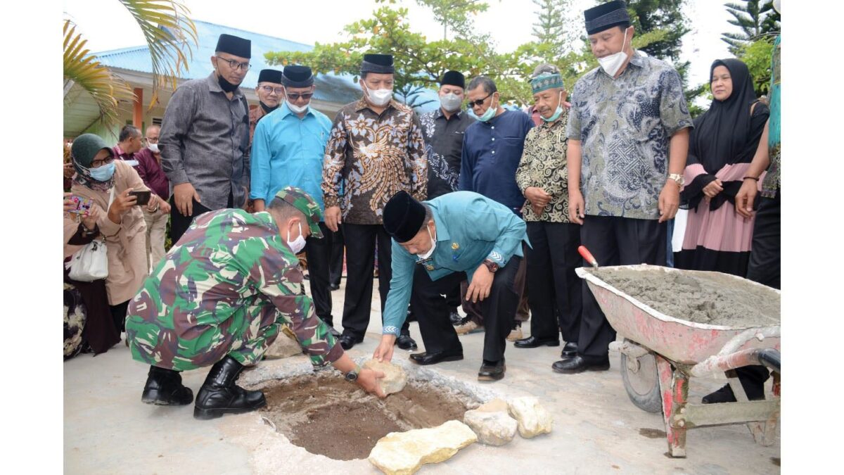 AGAM, METRO–Bupati Agam Andri Warman melaksanakan peletakan batu pertama pembangunan Musholla Nurul Iman SMPN 1 Tilatang Kamang, Sabtu (13/11).