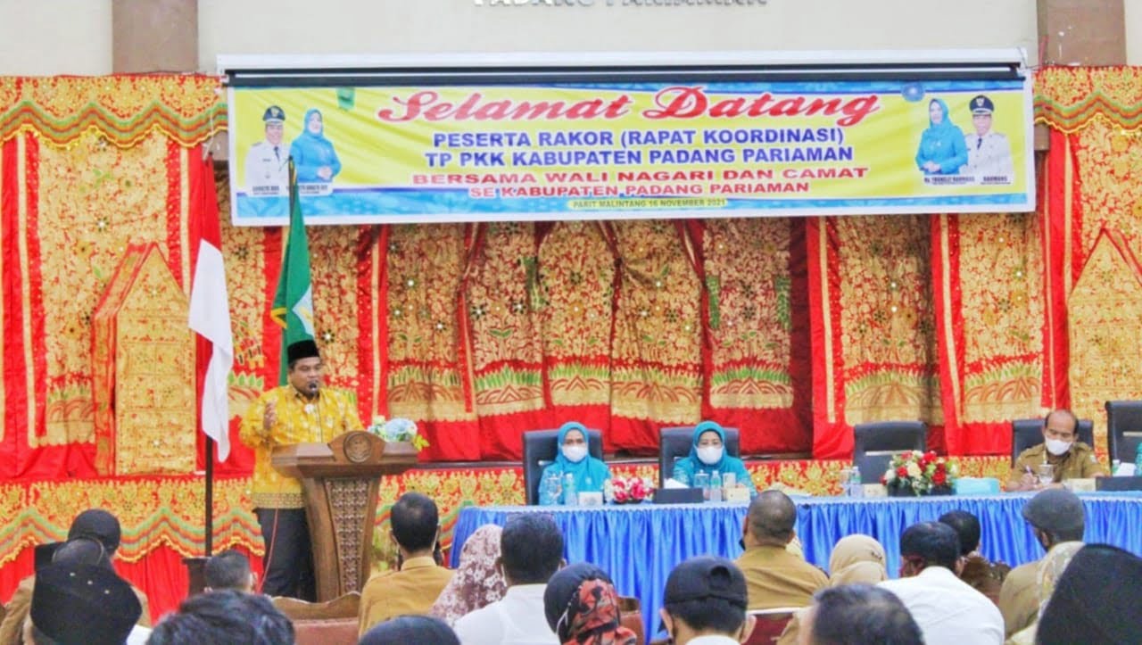 PADANGPARIAMAN, METRO–Bupati Padangpariaman Suhatri Bur, kemarin, membuka rakor TP.PKK Kabupaten Padangpariaman. Ia harapkan dalam rakor ini ada peningkatan koordinasi dan sinkronisasi program. “Pergunakan Rapat Koordinasi (Rakor) Tim Penggerak Pemberdayaan dan Kesejahteraan Keluarga (PKK) dengan Wali Nagari se Kabupaten Padangpariaman berguna untuk kemajuan daerah,” kata Bupati Padangpariaman Suhatri Bur, kemarin.