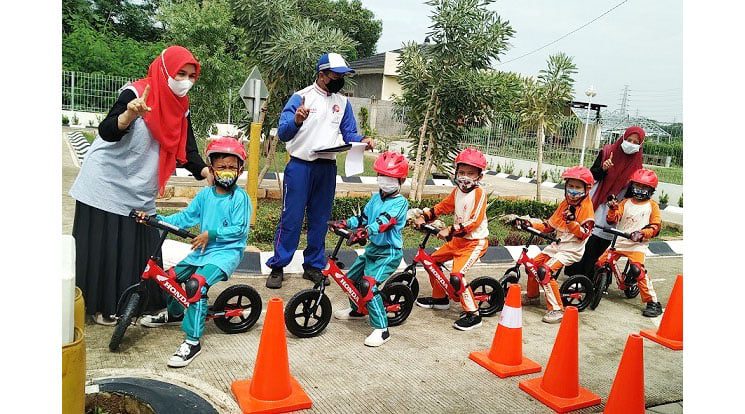 Edukasi calon generasi penerus bangsa yang dipandu langsung oleh 6 instruktur safety riding Honda.