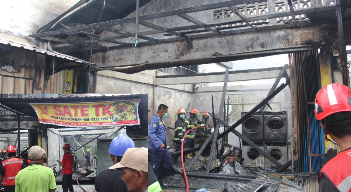 PADANG, METRO–Musibah kebakaran meludeskan lima petak toko di pinggir Jalan Raya Indarung, Kecamatan Lubuk Kilangan, Kota Padang, Minggu (28/11) sekitar pukul 12.45 WIB. Kejadian itu sontak menimbulkan kepanikan dan mengundang warga berdatangan ke lokasi untuk membantu pemilik toko mengeluarkan barang dagangannya.