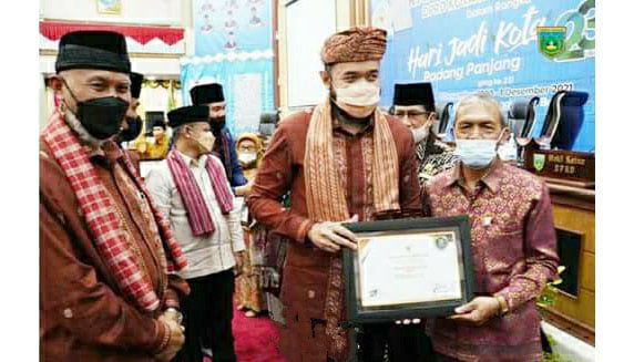 Penyematan di lakukan di Gedung DPRD Padangpanjang saat memperingati Hari Jadi Kota (HJK) ke-231,