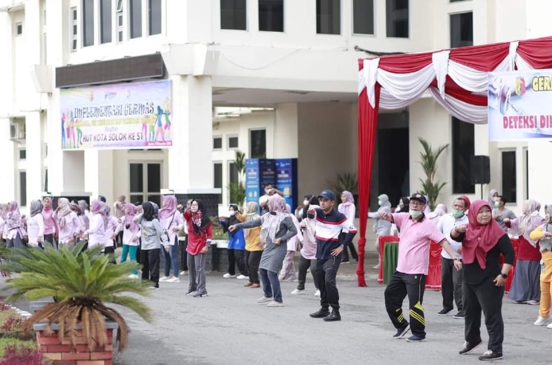 Dalam kegiatan tersebut, Ramadhani ikuti senam massal, cek kesehatan dalam rangka Implementasi GERMAS. Sekaligus juga dilakukan kegiatan vaksinasi Covid-19, bertempat di Halaman Balai Kota Solok, kemarin.