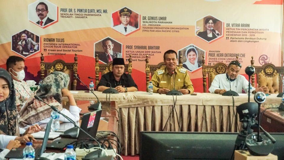 PARIAMAN, METRO–Wali Kota Pariaman, Genius Umar pada seminar “Green Tourism is a World’s Solution” melalui zoom meeting, kemarin. “Kota Pariaman adalah kota tujuan wisata. Dalam biografi, Kota Pariaman adalah kota kecil tetapi dengan semangat yang besar, Kami Pemerintah Kota Pariaman sangat fokus dibidang pariwisata dan sudah masuk ke tingkat nasional dan internasional,” kata Walikota Pariaman, Genius Umar pada seminar “Green Tourism is a World’s Solution” melalui zoom meeting, kemarin..