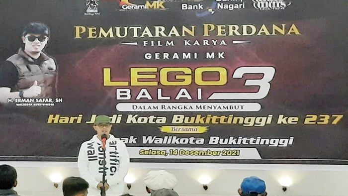 Gelaran nonton bareng ini dihadiri Wali Kota Bukittinggi Erman Safar didampingi jajaran Pemerintah Kota Bukittinggi beserta pemerhati seni dan penggemar Lego Balai 3.