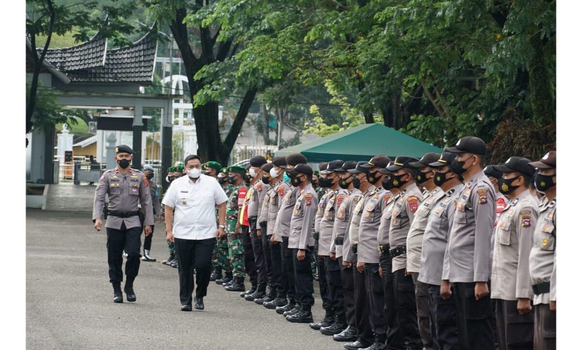 TANAHDATAR, METRO–Dalam rangka pengamanan tahapan pemilihan Wali Nagari (Pilwana) di Kabupaten Tanah Datar, Pemkab Tanah Datar melaksanakan apel gelar pasukan kesiapan PAM pilwana serentak 2021, Rabu (15/12) di halaman depan Istano Basa Pagaruyung.