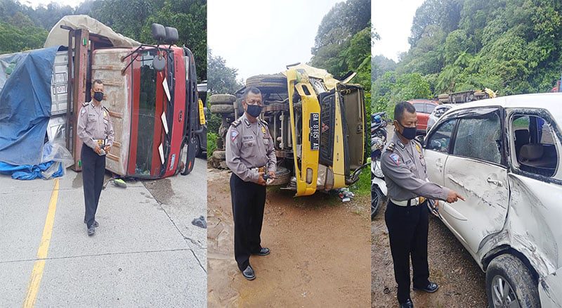 Dikatakan oleh Lija Nes­mon, kecelakaan melibatkan 3 unit kendaraan yaitu dump truk los bak dengan nomor polisi BA 9341 BU kontra truk box Colt Disel BA 8165 AE, kontra mini bus B 2289 PFN.