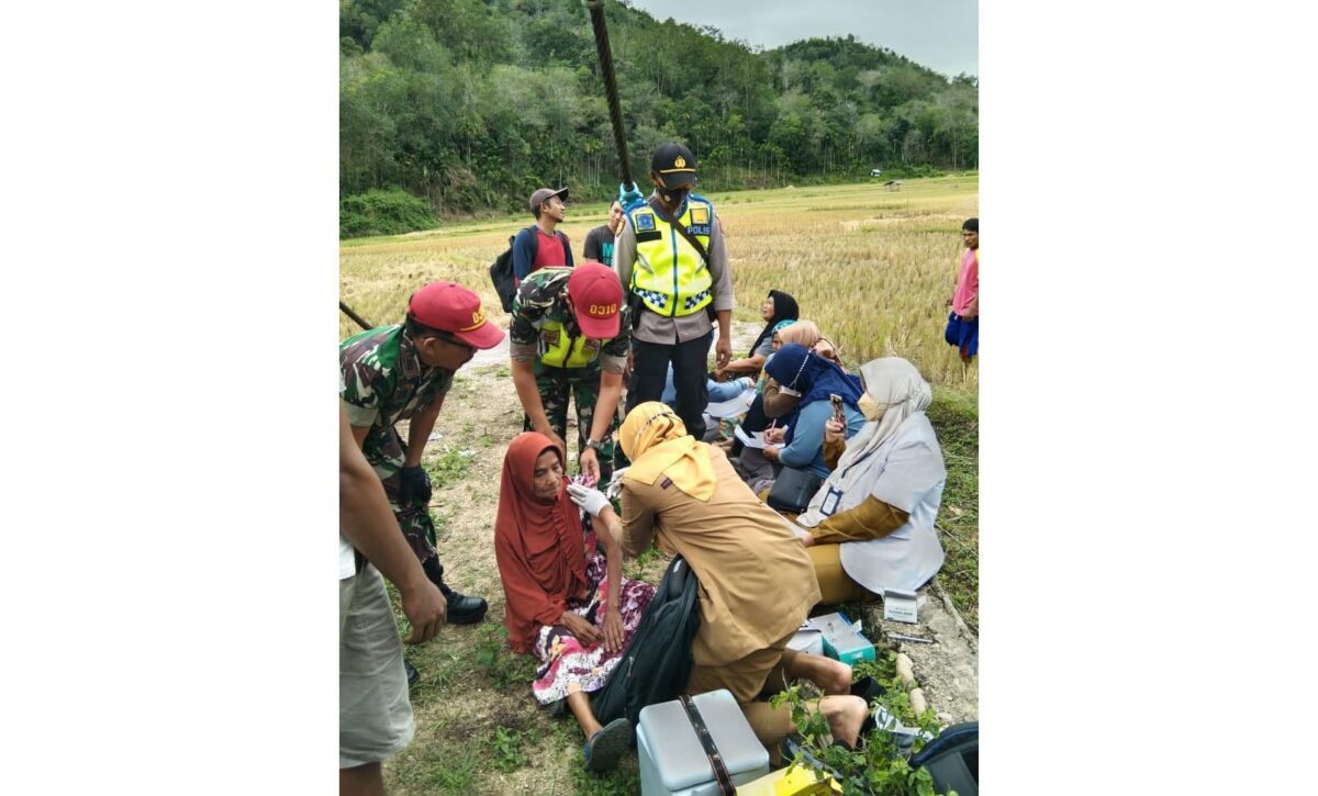 SIJUNJUNG, METRO–Capaian vaksinasi di Kabupaten Sijunjung semakin dekat menuju angka 70% yang menjadi target hingga penghujung tahun 2021. Persentase tersebut terus dikebut setiap harinya oleh Polres Sijunjung bersama tenaga kesehatan dan Kodim 0310/SS. Selain rutin mengadakan kegiatan Sumdarsin, pergerakan ditingkat polsek yang ada di Wilkum Polres Sijunjung juga menerapkan pola “dor too dor”, artinya petugas mendatangi langsung masyarakat dari rumah kerumah hingga ke ladang dan persawahan masyarakat.