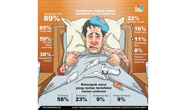 ““Disebutkan dr. Elvera, berdasarkan penelitian Pusat Pengendalian Pencegahan Penyakit AS (CDC), 89 persen pengidap Omicron mengalami keluhan batuk. Kemudian 65 persen mengalami keluhan kelelahan.