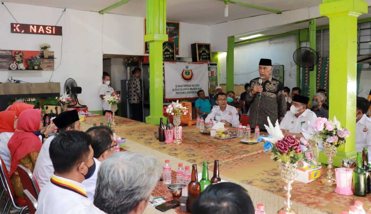 BENGKULU, METRO–MoU kerjasama yang dijalin antara Provinsi Sumatera Barat dan Bengkulu tidak hanya melibatkan pemerintah tetapi juga masyarakat, pengusaha hingga perantau Minang. “Kita sudah buat MoU dengan Bengkulu. Ini adalah sebuah jalan. Tindaklanjutnya nanti membutuhkan peran semua pihak termasuk masyarakat, pengusaha dan perantau Minang di Bengkulu,” kata Gubernur Sumbar, Mahyeldi saat bersilaturahmi dengan IKM Bengkulu, Rabu (22/12).