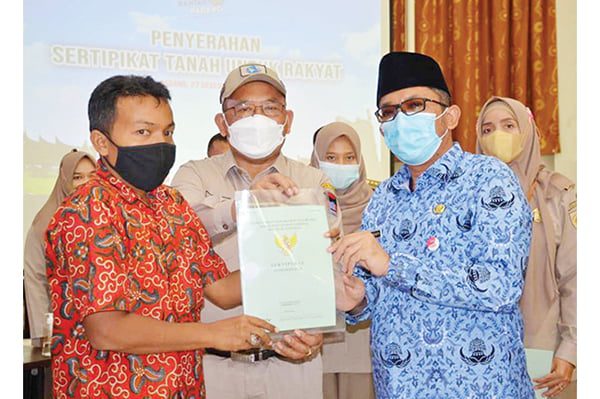 Sebagaimana diketa­hui, penyerahan setifikat hak atas tanah untuk rak­yat program PTSL ini me­rupakan program strategis nasional melalui Kementerian ATR/BPN yang berfungsi mengurangi sengketa tanah yang terjadi sebab sertifikat menjadi dasar bukti kepemilikan tanah yang berkekuatan hukum dan kuat.