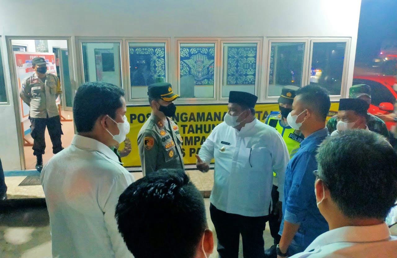 PDG.PARIAMAN, METRO–Memasuki tahun baru 2022, Bupati Padangpariaman Suhatri Bur, kemarin, bersama Forkopimda tinjau posko pengamanan (Pospam) Natal dan tahun baru (Nataru). Bupati Padangpariaman Suhatri Bur melihat kesiapan petugas di posko terpadu Nataru 2022 Bandara Internasional Minangkabau (BIM) di Nagari Ketaping Kecamatan Batang Anai Kabupaten Padangpariaman.