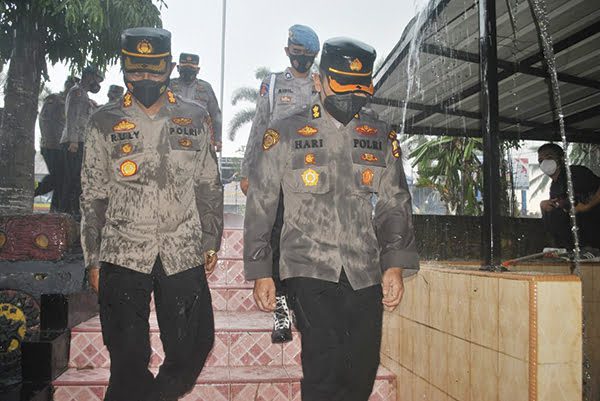 TANAHDATAR, METRO–Polres Tanah Datar menggelar pisah sambut Kapolres, jabatan itu diserahterimakan dari AKBP Rokhmad Hari Purnomo, SIK. M.Si kepada pejabat baru AKBP Ruly Indra Wijayanto, SIK. M.Si. Pisah sambut orang nomor satu di Polres Tanah Datar tersebut dilakukan dengan Tradisi Pedang Pora, yang menerapkan protokol kesehatan secara ketat, di halaman Mapolres Tanah Datar, Sabtu (8/1) sekira pukul 09.00 WIB.