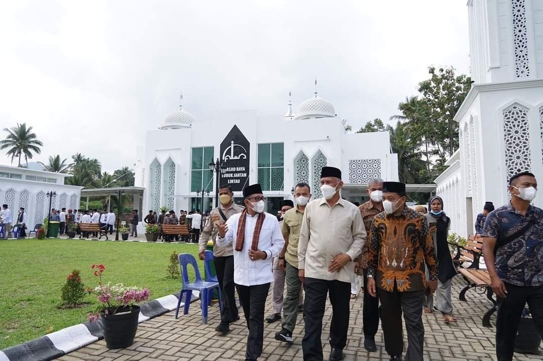 TANAHDATAR, METRO–Gubernur Sumbar Mahyeldi Resmikan Masjid Raya Lubuk Jantan Lintau Buo Utara diresmikan pemakaiannya oleh Gubernur Sumbar Mahyeldi Ansyarullah, Sabtu (8/1). Peresmian tersebut juga dihadiri Bupati Tanah Datar Eka Putra, Wakil Bupati Richi Aprian, Ketua MUI Sumbar Gusrizal Gazahar, Mantan Bupati dan Wakil Bupati Shadiq Pasadigue, Aulizul Syuib, anggota DPRD Tanah Datar, Jhon Kompol, Asisten Ekobang Edi Susanto serta pimpinan OPD, Camat Lintau Buo Utara Arif Gani, Forkopimca, tokoh masyarakat minang Fasli Jalal.