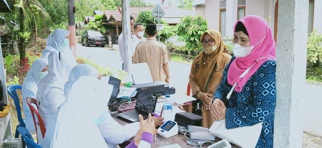 TINJAU—Ketua TP-PKK Padangpariaman, Ny.Yusrita Suhatri Bur saat meninjau pelaksanaan vaksinasi.