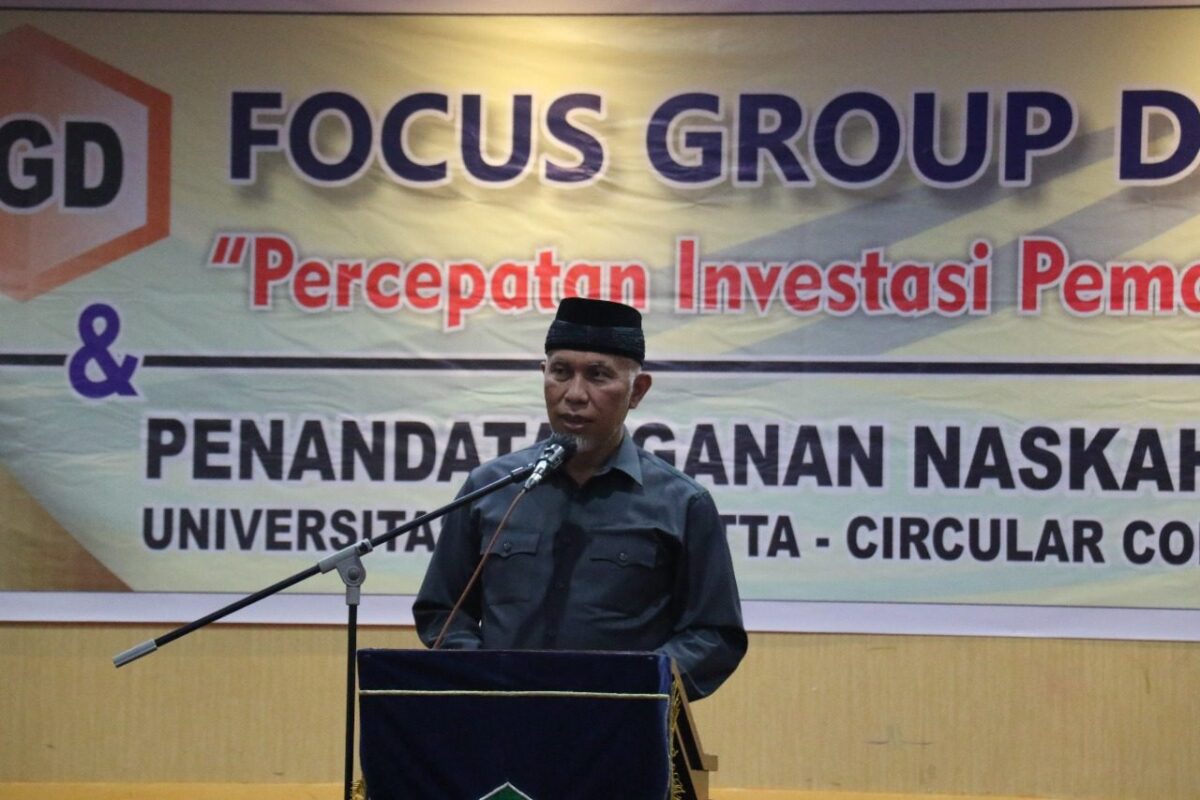 PADANG, METRO–Menindaklanjuti upaya bersama pengelolaan sampah di lingkungan Provinsi Sumatera Barat, Universitas Bung Hatta bersama Circular Connect Foundation dan Pemerintah Provinsi Sumatera Barat menggelar Focus Group Discussion (FGD) dalam rangka penandatanganan MoU tentang kerjasama Percepatan Investasi Pemanfaatan Sampah dengan Universitas Bung Hatta, Selasa (18/1).
