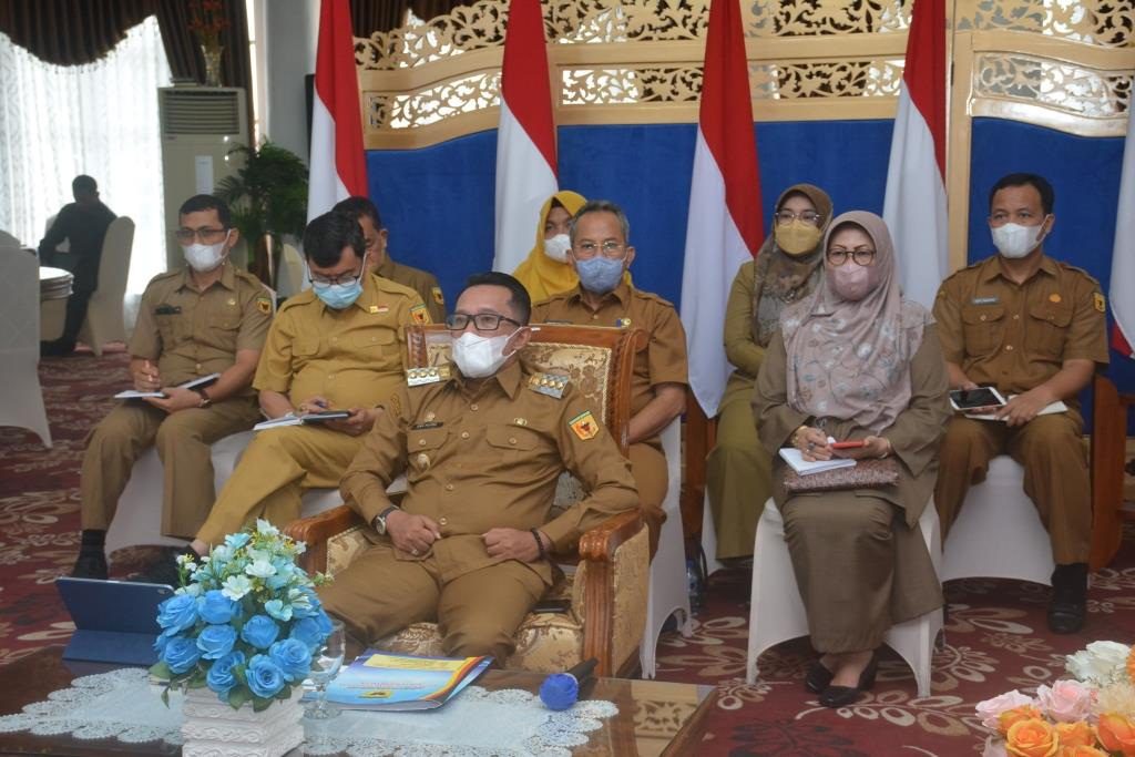 TANAHDATAR, METRO–Bupati Tanah Datar Eka Putra di­dampingi para Asisten,  Kepala Ba­perlitbang, Kabag Hukum, Kabag PBJ, Kabag PEM mengikuti Rapat Kerja bersama Menteri Dalam Negeri (Men­dagri) M. Tito Karnavian, ketua KPK Firli Bahuri dan Kepala LKPP RI Abdullah Azwar Anas secara virtual dari In­dojolito, Senin (24/1). Dalam rapat kerja membahas pelaksanaan program stra­tegis Kepala Daerah mulai Gubernur sampai bupati/walikota se Indonesia, Mendagri menyampaikan agar kepala daerah menghindari praktik korupsi.