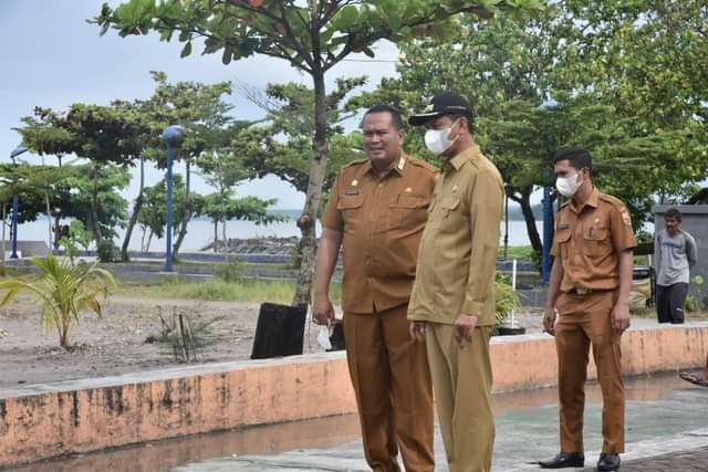 BERSAMA—Wako tinjau objek wisata pantai bersama sekdako.