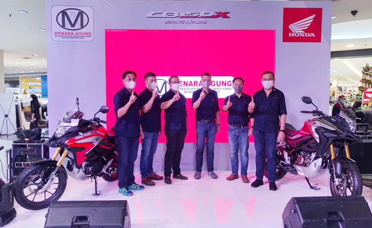 PADANG, METRO–Mengawali tahun 2022 ini, PT Menara Agung sebagai main dealer sepeda motor Honda dan Sparepart di Sumatra Barat (Sumbar) mengadakan promo bagi masyarakat yang ingin melakukan pembelian motor sport adventure turing 150cc Honda New CB150X.