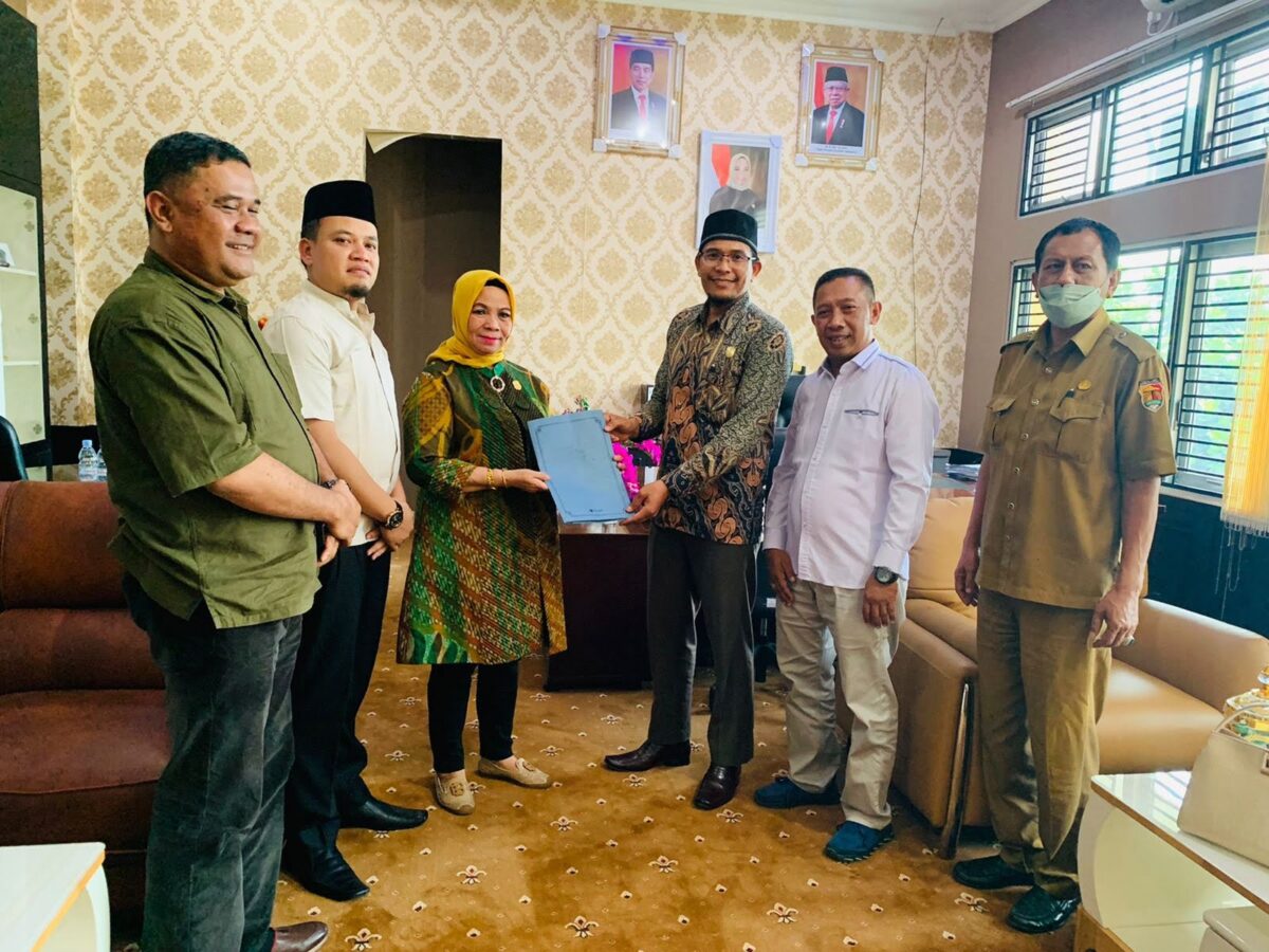 Ketua Fraksi Solok Adil Makmur, Taufiq Nizam dan anggota Fraksi Solok Bersatu, Rusnaldi serta didampingi ketua BK, Deni Nofri Pudung mewakili anggota dewan lainya menyerahkan usulan hak angket kepada ketua DPRD Nurnisma.