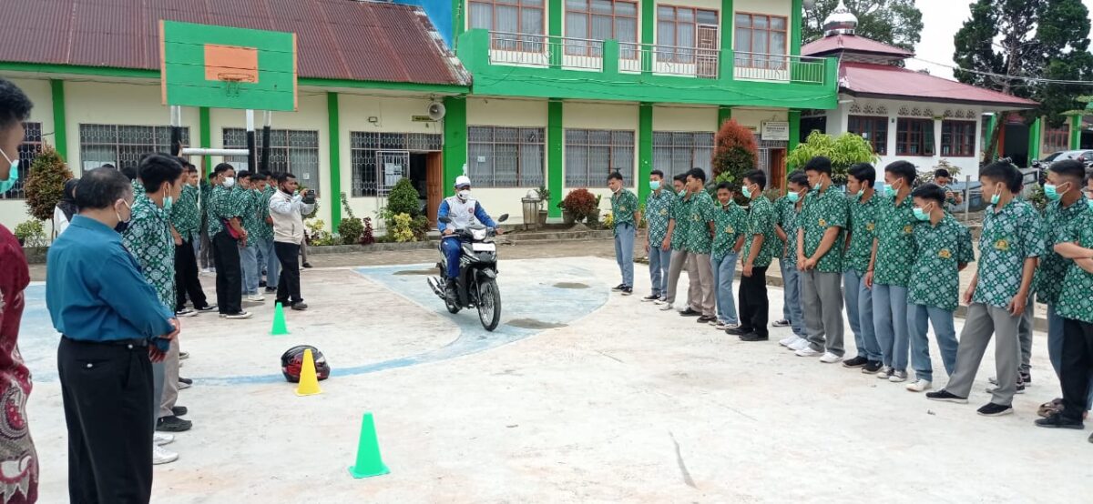 Sebanyak lebih kurang 70 orang siswa antusias mengikuti pelatihan kese­lamatan berkendara di kelas dan praktek langsung yang disampaikan oleh Dio Suryanto selaku Safety Riding Instructor PT.Hayati Pratama Mandiri.