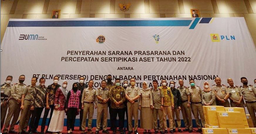 Padang, 02 Februari 2022, PT PLN (Persero) bersama dengan Kantor Wilayah Badan Pertanahan Nasional Provinsi Sumatera Barat melaksanakan acara Penyerahan Sarana Prasarana dan Percepatan Sertifikasi Aset Tahun 2022. Pada acara tersebut PT PLN (Persero) Unit Induk Pembangunan Sumatera Bagian Tengah menyerahkan 26 set PC dan 13 printer dan PT PLN (Persero) Unit Induk Wilayah Sumatera Barat menyerahkan 14 set PC dan 7 printer sehingga total hibah sarana dan prasarana dari PT PLN (Persero) kepada Kanwil BPN Provinsi Sumatera Barat berjumlah 40 set PC dan 20 printer. Sarana dan prasarana ini diperuntukkan untuk setiap Kantor Pertanahan di Kota dan Kabupaten di wilayah Provinsi Sumatera Barat guna mendukung dan mempercepat proses Sertifikasi Aset Tanah PLN di wilayah Provinsi Sumatera Barat.