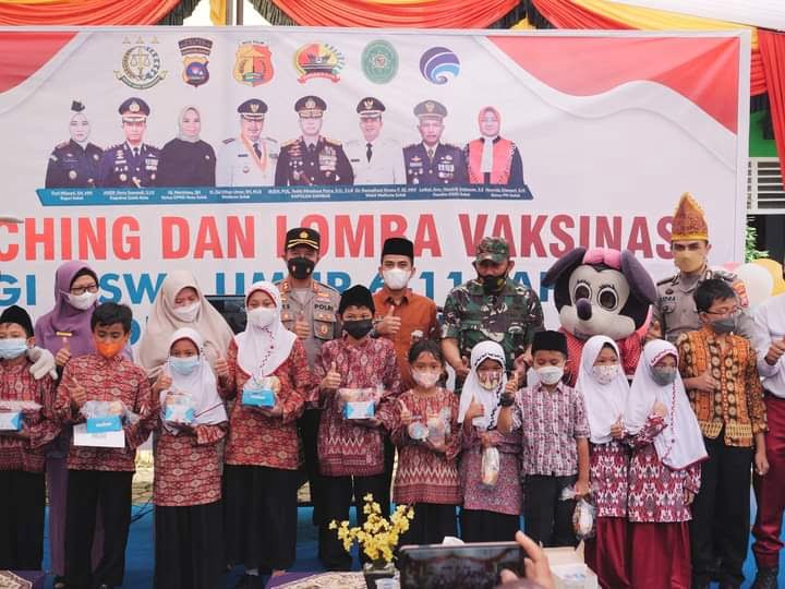 SOLOK, METRO–Pemko Solok bersama Forkompinda gelar lomba vaksinasi bagi siswa umur 6-11 tahun di Kota Solok. Pelepasan balon Wakil Wali Kota Solok Ramadhani Kirana Putra bersama Forkopimda, menandai dilaunchingnya lomba vaksinasi bagi siswa umur 6-11 rahun.