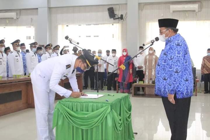 PASAMAN, METRO–Bupati Pasaman H Benny Utama melantik ratusan pejabat Administrator di lingkungan Pemerintah Kabupaten (Pemkab) Pasaman, Jumat (4/1). Pelantikan tersebut dilaksanakan di lantai lll kantor Bupati Pasaman. Selain dihadiri Bupati Pasaman pelantikan tersebut dihadiri Wakil Bupati Pasaman Sabar AS, Sekretaris Daerah (Sekda) Pasaman Drs Mara Ondak, Kepala OPD, Asisten Staf Ahli dan pejabat lainnya di lingkungan Pemkab Pasaman.